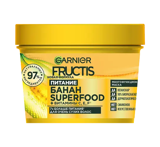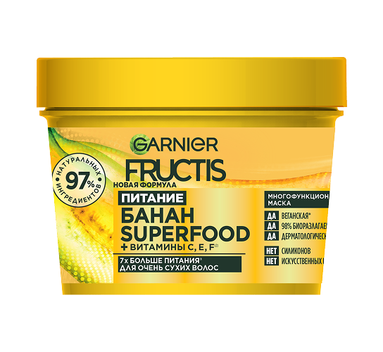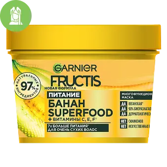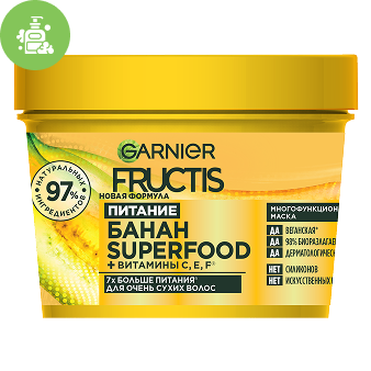 Superfood Банан Питательная маска 3-в-1 для восстановления, питания и увлажнения очень сухих волос, 390 мл