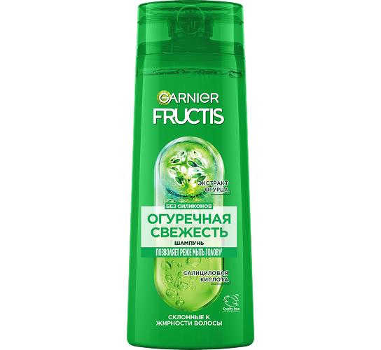 Укрепляющий шампунь для волос Фруктис, Огуречная Свежесть, для волос, склонных к жирности, 400 мл