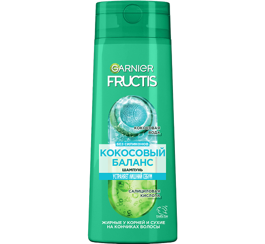 Укрепляющий шампунь Фруктис Кокосовый Баланс для волос жирных у корней и сухих на кончиках, 400 мл
