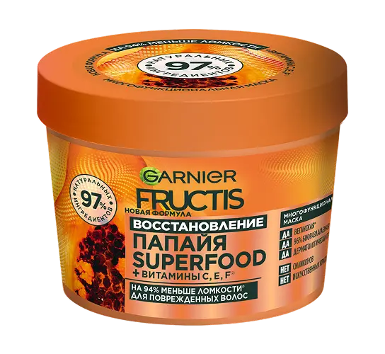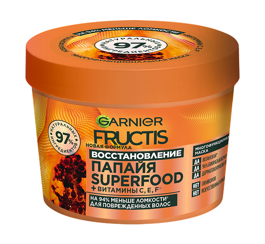 Маска для волос 3в1 Фруктис, Superfood Папайя, восстанавливающая, для поврежденных волос, 390 мл